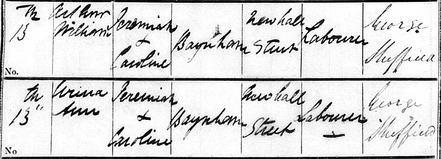 Urina was born on 20th November 1854, at Oak Road and Arthur William, my great-grandfather, was born on 6th June 1856, at Newhall Street.