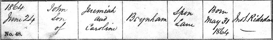 Sons born during the 1860s and baptised in the local Wesleyan-Methodist chapel at West Bromwich were –
