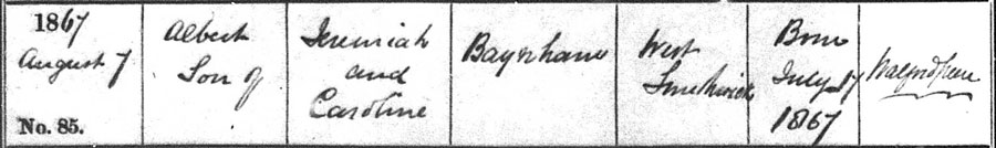 Albert, born on 17th July 1867 and baptised on 7th August.