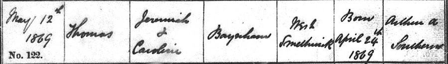 Thomas, born on 24th April 1869 and baptised on 12th May.