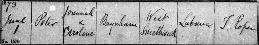 Peter, born on 21st April 1873 and baptised on 1st June.