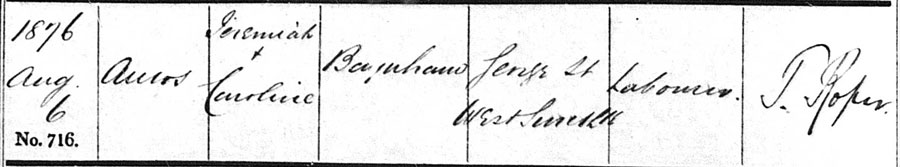 Amos Joseph, born on 7th July 1876 and baptised on 6th August.