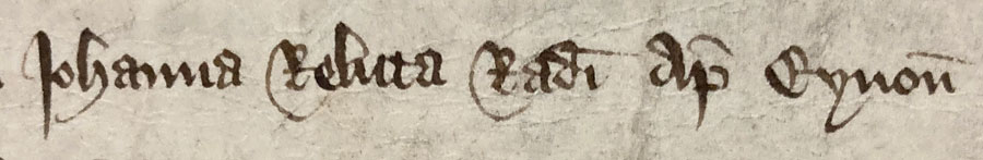 This deed showed that by 1376 Johanna (de Dene) was a widow, after the death of her husband Ralph Ap Eynon …
