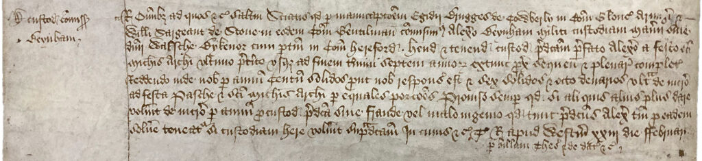 Alexander also appears as a witness to a demise by charter made on 4th September 1494 by John Hewet of houses and land in Hidcote Bertram in Gloucestershire; the other witnesses are John Seyntlo and Walter Denys.